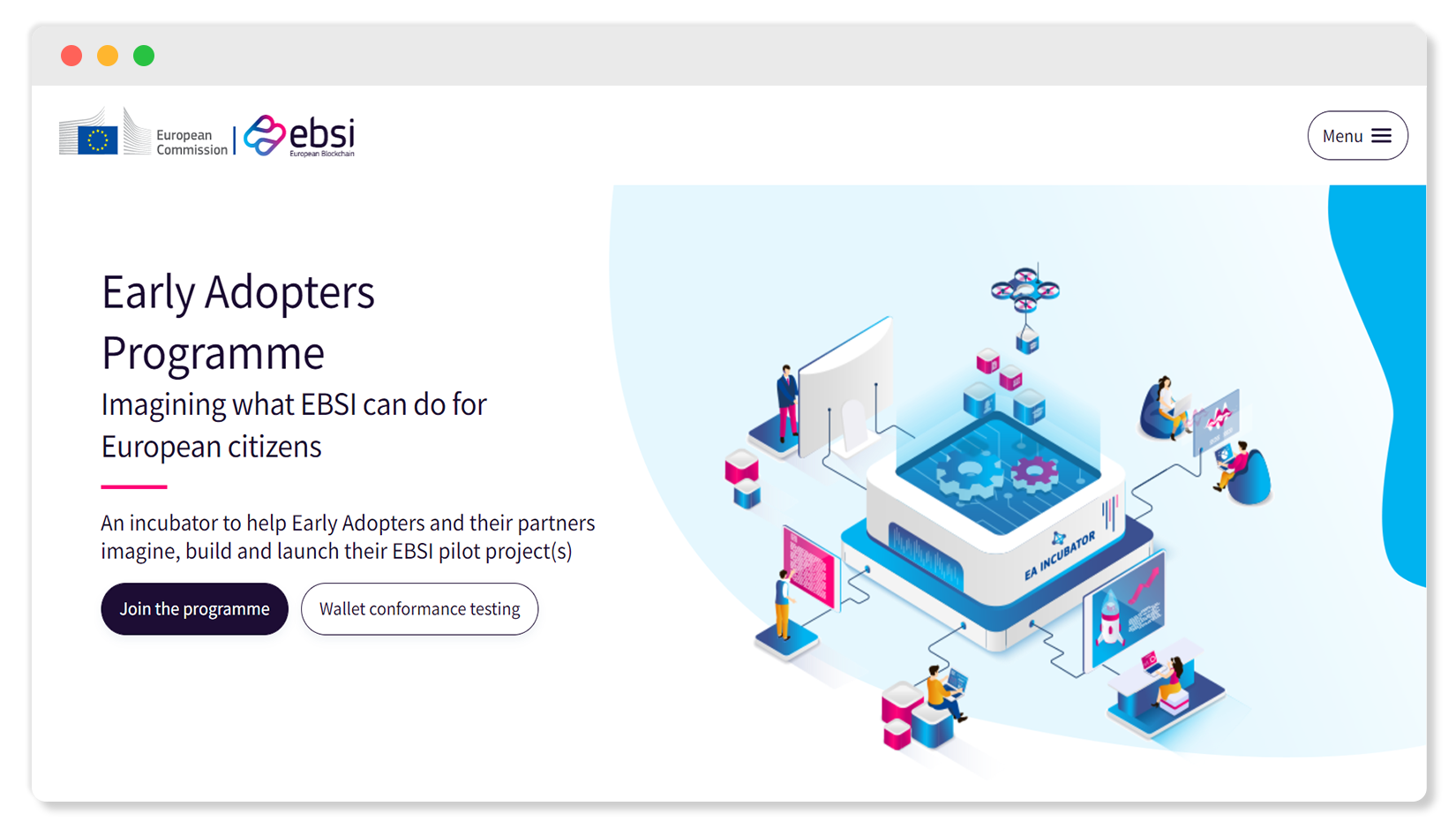 В июле 2022 года Early Adopter — это инкубатор для проектов на блокчейне с использованием среды EBSI. Участники этой программы могут подключить свои системы к европейскому блокчейну, стать частью сообщества и сотрудничать с другими участниками.